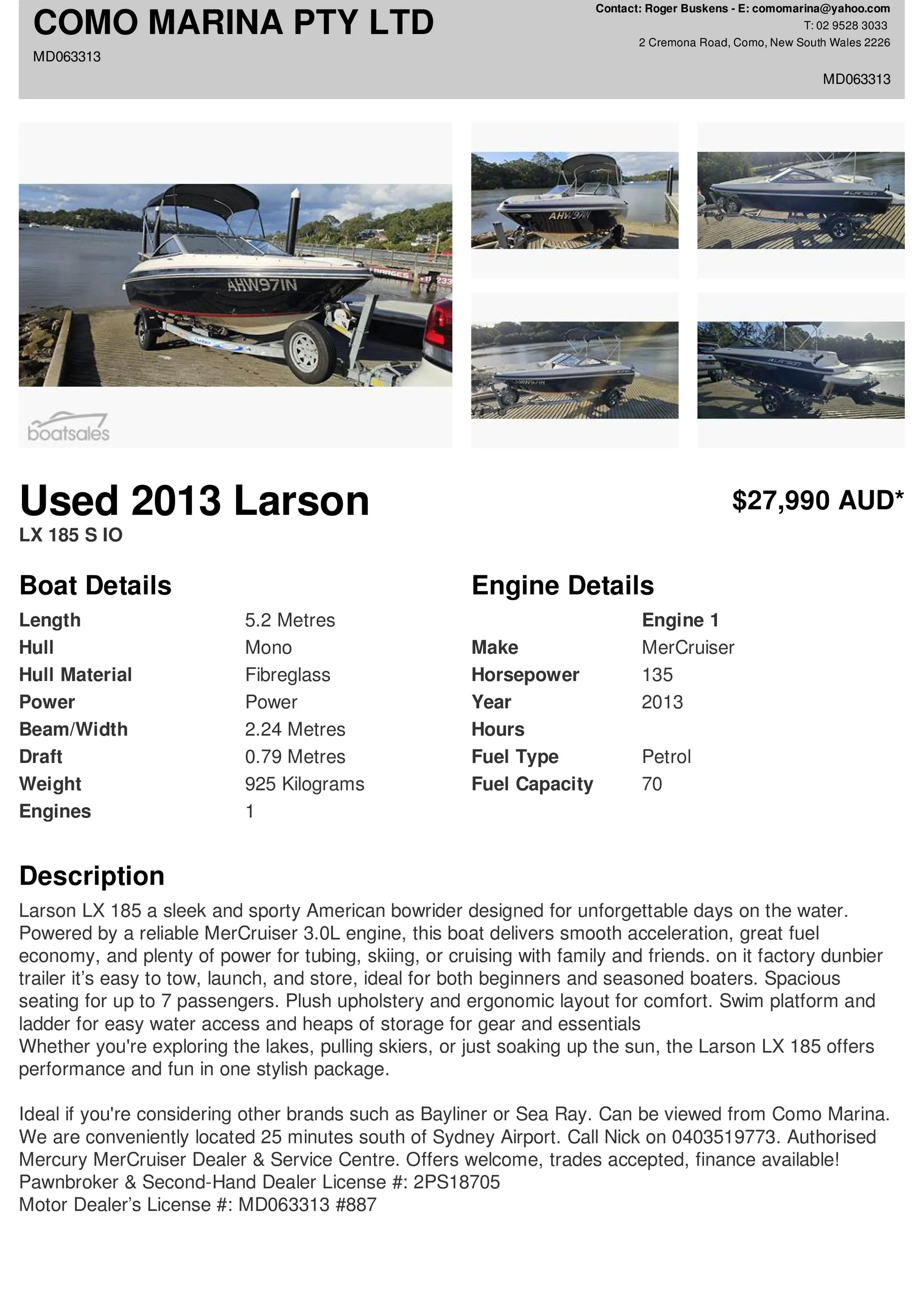 Call us on 02 9528 3033 to sell your boat today! Otherwise hit us up with an email on comomarinaboats@yahoo.com!
